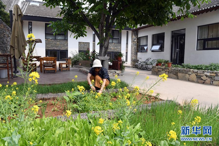 5月21日,在天津市薊州區(qū)漁陽鎮(zhèn)西井峪村的一處農(nóng)家院,游客采摘新鮮蔬菜。新華社記者馬平攝