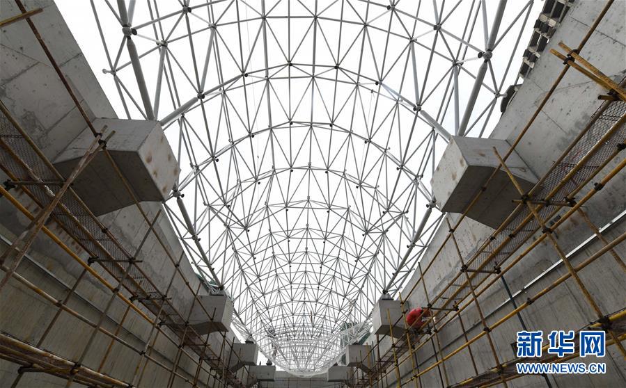 5月23日,工人在??谖拿鳀|越江通道項目江西段主線出入口施工。近日,記者從??谖拿鳀|越江通道項目部了解到,目前,項目工程量已完成85%,預計下半年竣工通車。據(jù)了解,海口文明東越江通道是連接??谥鞒菂^(qū)和江東新區(qū)的重要紐帶,2018年底開工,全長4.38千米,其中隧道段2.72千米。新華社記者楊冠宇攝