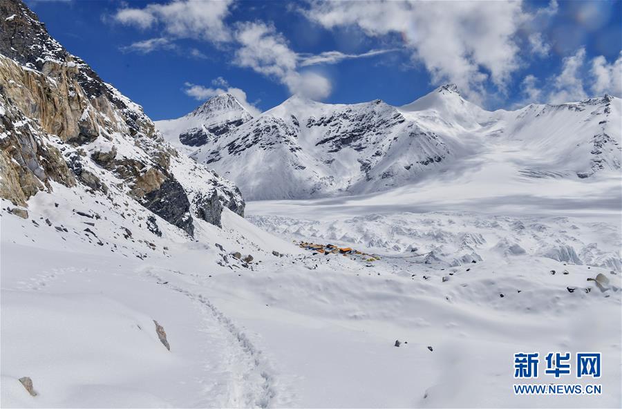 被大雪覆蓋的海拔6500米的珠峰前進(jìn)營地(5月22日攝)。新華社記者晉美多吉攝