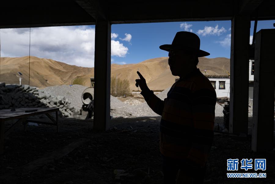 “牛頭旅館”老板多吉在新蓋的旅館監(jiān)工(5月17日攝)。新華社記者普布扎西攝