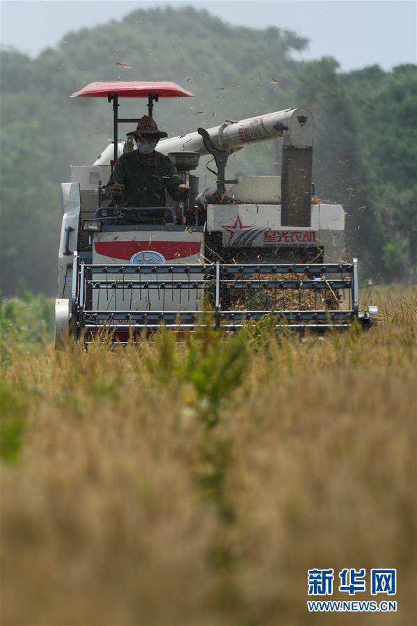 5月24日,農(nóng)戶駕駛收割機在浙江省湖州市吳興區(qū)八里店鎮(zhèn)尹家圩糧油植保農(nóng)機專業(yè)合作社的麥田里進(jìn)行收割作業(yè)。新華社記者黃宗治攝