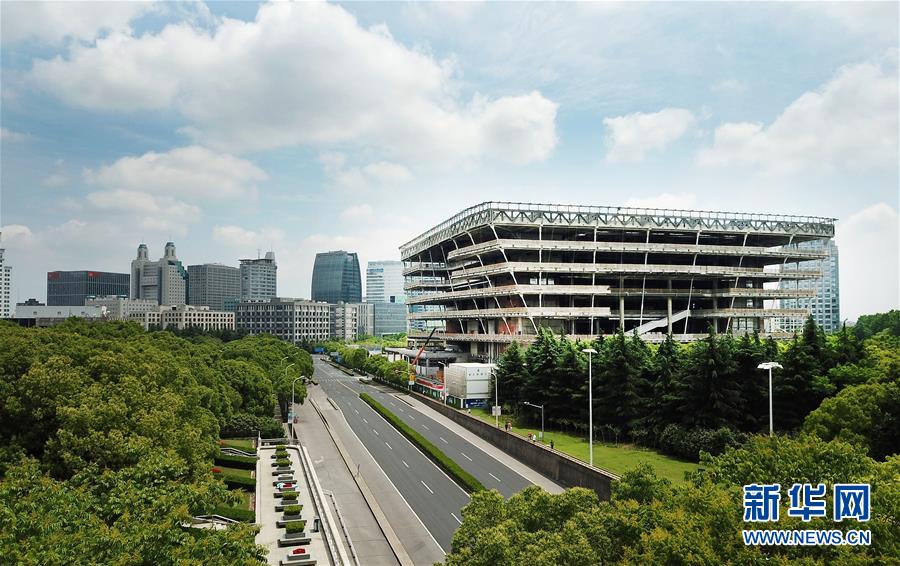 5月22日拍攝的建設(shè)中的上海圖書館東館(無人機(jī)照片)。 上海圖書館東館位于上海浦東新區(qū),總建筑面積11.5萬平方米。目前,建設(shè)工程正在緊鑼密鼓地進(jìn)行,預(yù)計(jì)將在2020年內(nèi)竣工,2021年試開放運(yùn)營。 新華社記者 方喆 攝