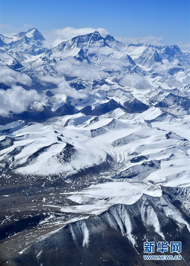 從空中拍攝的珠峰(5月14日攝)。新華社記者覺(jué)果攝