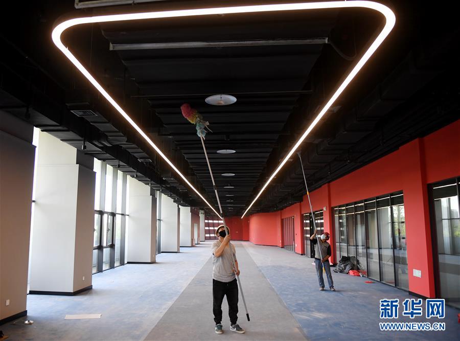 55月27日,保潔人員在“冰壇”內(nèi)部進行保潔工作。新華社記者張晨霖攝