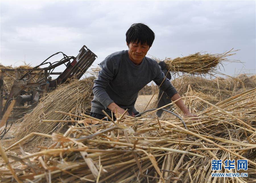 5月20日,在新疆博湖縣西南河口葦場,工人搬運(yùn)蘆葦。新華社記者宋彥樺攝