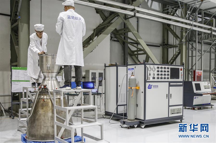 5月26日,工作人員在藍(lán)箭航天(湖州)智能制造基地發(fā)動機裝配區(qū)進行發(fā)動機質(zhì)檢工作。新華社記者張玉薇攝