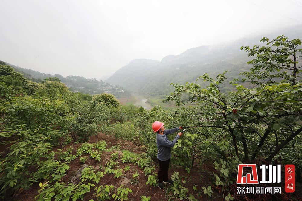 2020年5月27日,在貴州省畢節(jié)市納雍縣化作鄉(xiāng)雙巖頭村,村民對櫻桃進行田間管理。