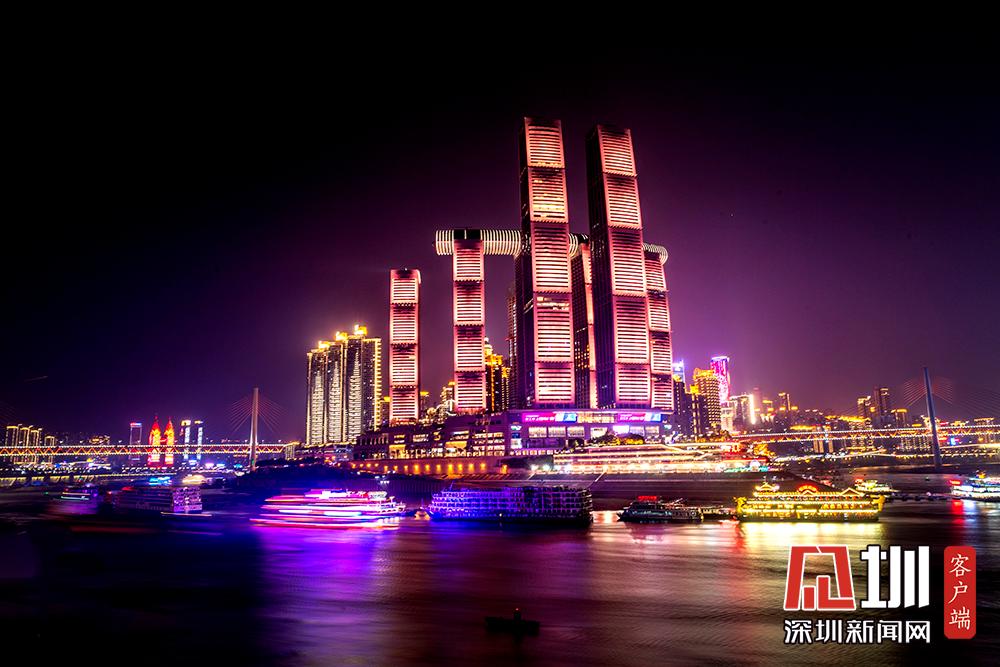 圖為夜色中重慶朝天門來福士廣場。