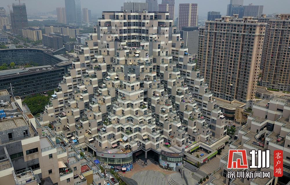 2018年7月29日,航拍江蘇省昆山市花橋國際商務(wù)城游站未來城小區(qū),空中俯瞰,由三棟樓盤組成的該小區(qū)造型奇特,高低錯落有致,酷似“金字塔”。