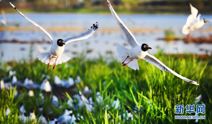 5月28日在陜西省神木市紅堿淖拍攝的遺鷗。陜西省神木市紅堿淖是中國最大的沙漠淡水湖,近年來隨著周邊生態(tài)環(huán)境改善,紅堿淖水位逐年提升,水域面積不斷擴(kuò)大,每年四至八月,都會(huì)吸引大批遺鷗來此繁衍棲息,已成為遺鷗繁殖的重要基地。新華社記者陶明攝