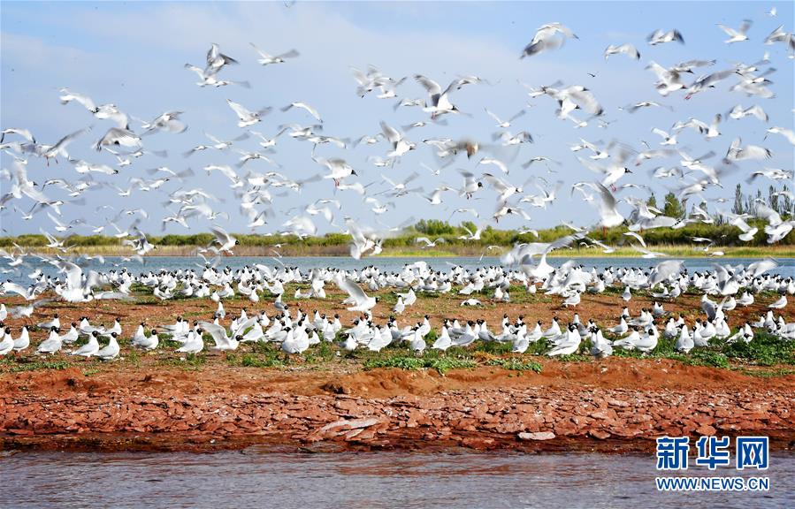 5月27日在陜西省神木市紅堿淖拍攝的遺鷗。陜西省神木市紅堿淖是中國最大的沙漠淡水湖,近年來隨著周邊生態(tài)環(huán)境改善,紅堿淖水位逐年提升,水域面積不斷擴(kuò)大,每年四至八月,都會(huì)吸引大批遺鷗來此繁衍棲息,已成為遺鷗繁殖的重要基地。新華社記者劉瀟攝