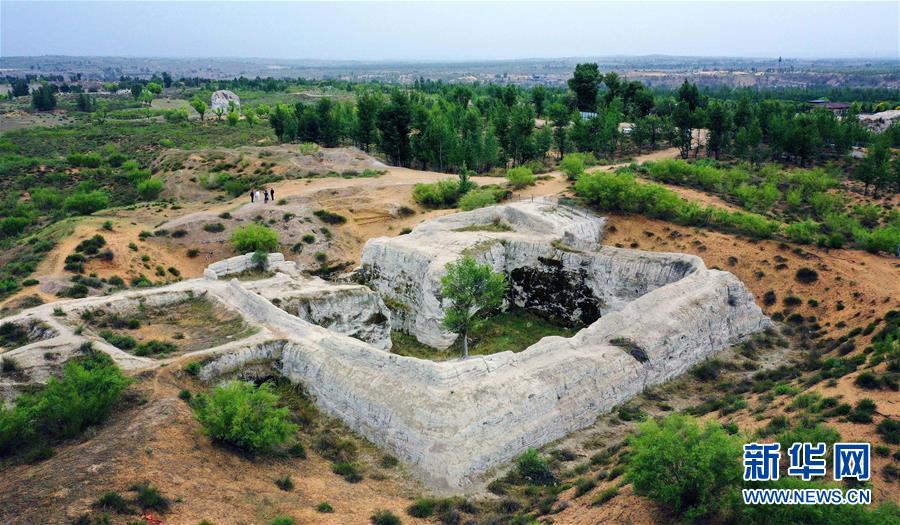 統(tǒng)萬城西門及甕城遺址(5月30日攝,無人機照片)。新華社記者劉瀟攝