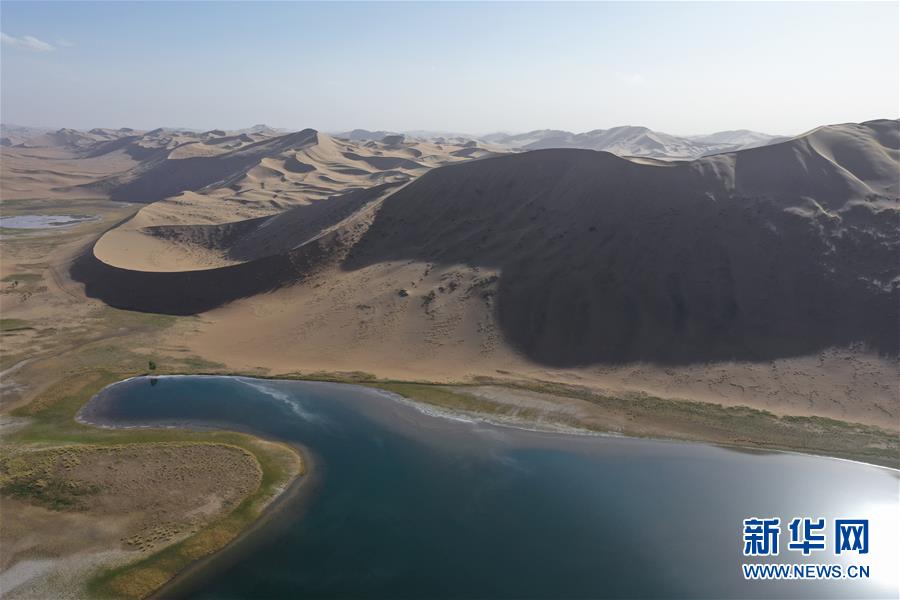 這是5月29日拍攝的巴丹吉林沙漠香根吉林湖(無(wú)人機(jī)照片)。新華社記者徐欽攝。