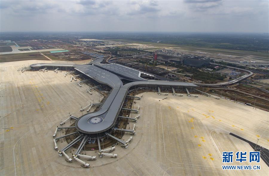 這是4月11日拍攝的建設(shè)中的海口美蘭國(guó)際機(jī)場(chǎng)二期項(xiàng)目航站樓(無(wú)人機(jī)照片)。新華社記者郭程攝