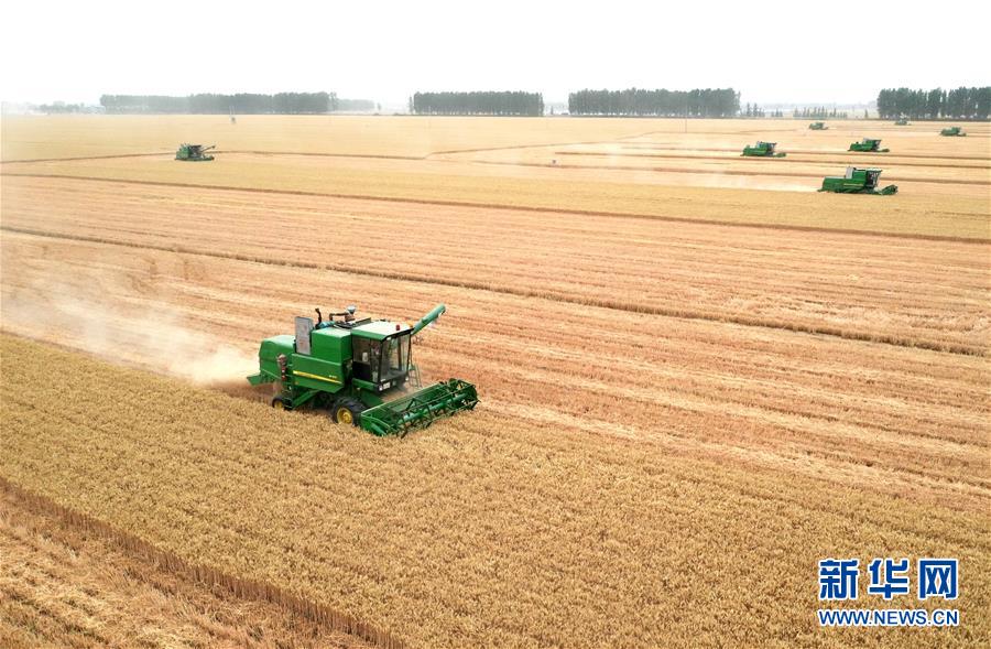 “三夏”時節(jié),中原大地一片金黃。位于河南省周口市的黃泛區(qū)農(nóng)場機聲隆隆,10萬畝小麥?zhǔn)斋@正酣。