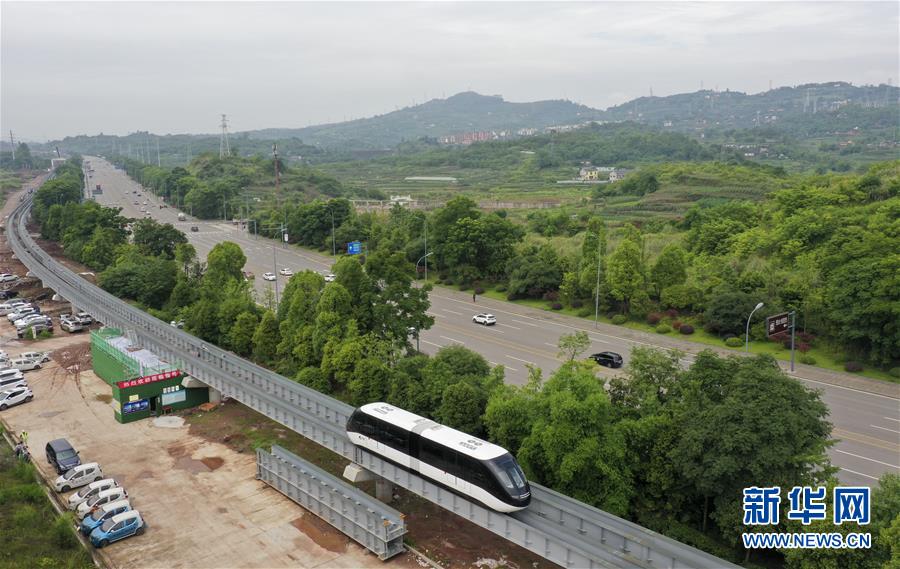 6月3日,一臺(tái)“云巴”在專(zhuān)用運(yùn)行軌道上進(jìn)行調(diào)試(無(wú)人機(jī)照片)。近日,重慶市首條“云巴”示范線項(xiàng)目在重慶璧山區(qū)正式亮相。此次發(fā)布的“云巴”采用電能驅(qū)動(dòng),具有轉(zhuǎn)彎半徑小、爬坡能力強(qiáng)、噪音低、安全性高、建設(shè)成本低、建造周期短等優(yōu)勢(shì),能為乘客提供更智能、舒適、便捷的出行體驗(yàn)。據(jù)介紹,璧山區(qū)“云巴”示范線項(xiàng)目自2019年8月開(kāi)建,線路正線全長(zhǎng)15.4km,共設(shè)車(chē)站15座,預(yù)計(jì)2020年9月全線通車(chē)。新華社記者劉潺攝。