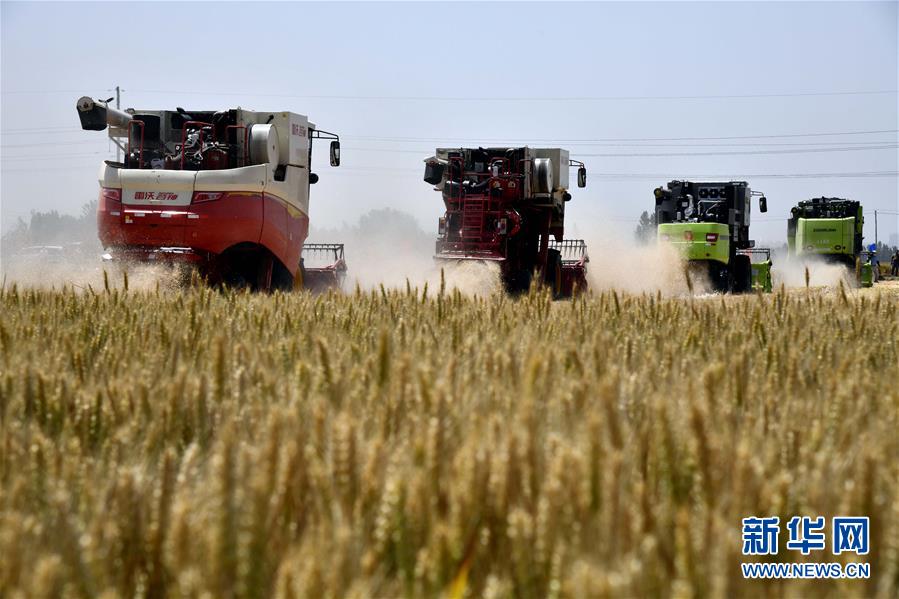 6月3日,收割機(jī)在汶上縣郭倉(cāng)鎮(zhèn)的麥田里收獲小麥。目前,我國(guó)第二大小麥主產(chǎn)區(qū)山東6000多萬(wàn)畝小麥進(jìn)入收獲階段。農(nóng)民們搶抓有利天氣,自南向北陸續(xù)開(kāi)鐮。新華社記者郭緒雷攝。