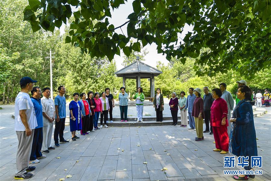 6月5日,市民在文安縣水景公園內(nèi)練習(xí)合唱。近年來,河北省文安縣將植樹造林與城市建設(shè)有機(jī)融合,探索“政府引導(dǎo)、企業(yè)運(yùn)作、多方共贏”的市場(chǎng)化植樹造林新模式,大規(guī)模推進(jìn)國(guó)土綠化,打造人與自然和諧共生的優(yōu)美生態(tài)環(huán)境,構(gòu)筑京津雄綠色屏障。截至目前,該縣森林覆蓋率已經(jīng)達(dá)到33%,城區(qū)綠地面積達(dá)到36.48%。新華社記者李曉果攝。