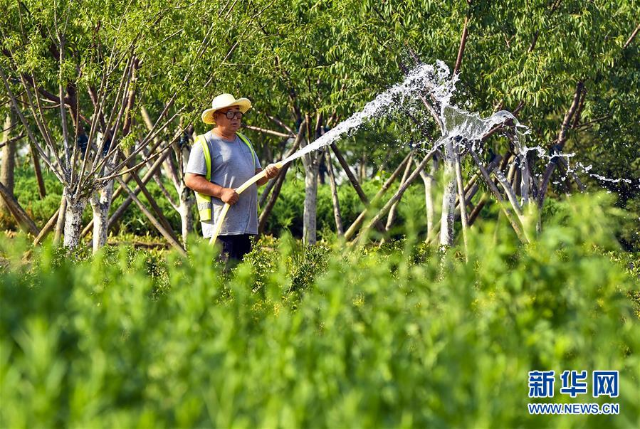 6月5日,在文安縣迎賓大道,工人給花池澆水。近年來,河北省文安縣將植樹造林與城市建設(shè)有機(jī)融合,探索“政府引導(dǎo)、企業(yè)運(yùn)作、多方共贏”的市場(chǎng)化植樹造林新模式,大規(guī)模推進(jìn)國(guó)土綠化,打造人與自然和諧共生的優(yōu)美生態(tài)環(huán)境,構(gòu)筑京津雄綠色屏障。截至目前,該縣森林覆蓋率已經(jīng)達(dá)到33%,城區(qū)綠地面積達(dá)到36.48%。新華社記者李曉果攝。
