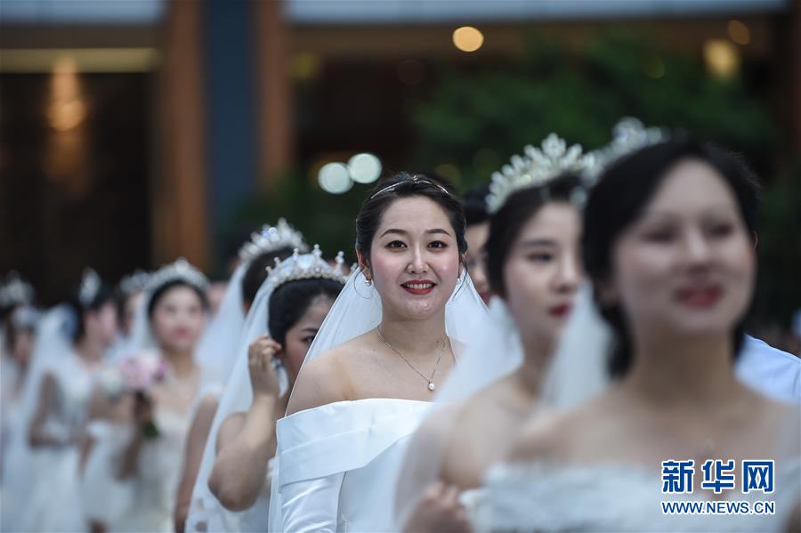 6月6日,新人在海南博鰲樂城國際醫(yī)療旅游先行區(qū)參加集體婚禮。當日,來自北京、武漢、廣州等地的30對新人在海南博鰲樂城國際醫(yī)療旅游先行區(qū)參加了一場集體婚禮。參加婚禮的部分新人此前因參加湖北的抗疫工作而推遲了婚期。  新華社記者 張麗蕓 攝