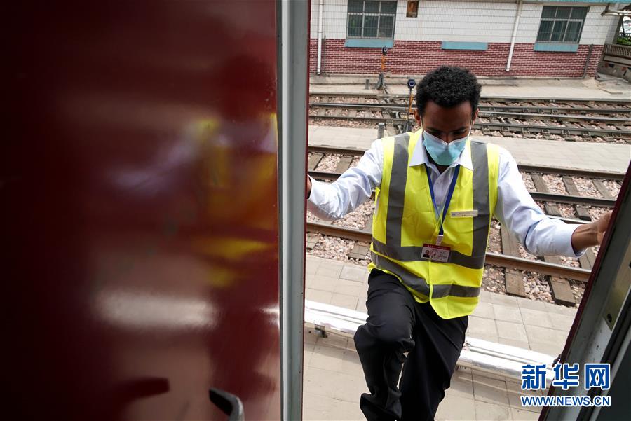 6月5日,特瑞薩在鄭州機(jī)務(wù)段內(nèi)登上機(jī)車(chē)。 新華社記者 李安 攝