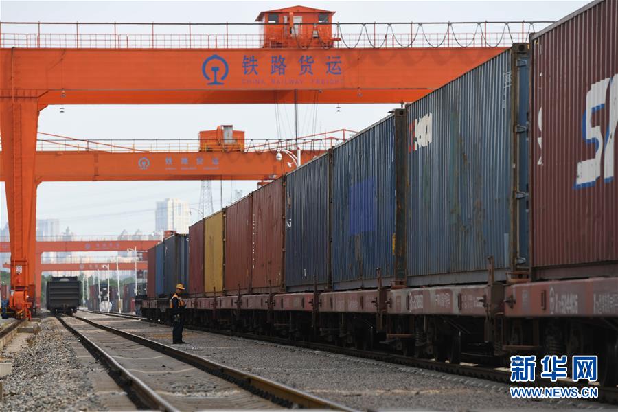 6月6日,合肥首開(kāi)至荷蘭蒂爾堡的中歐班列(上)準(zhǔn)備從合肥北站物流基地駛出(無(wú)人機(jī)照片)。當(dāng)日,搭載82個(gè)標(biāo)準(zhǔn)集裝箱的中歐班列從中國(guó)鐵路上海局集團(tuán)有限公司合肥貨運(yùn)中心合肥北站物流基地駛出發(fā)往荷蘭蒂爾堡,標(biāo)志著合肥中歐班列通往荷蘭蒂爾堡的線路正式開(kāi)通。新華社記者張端攝