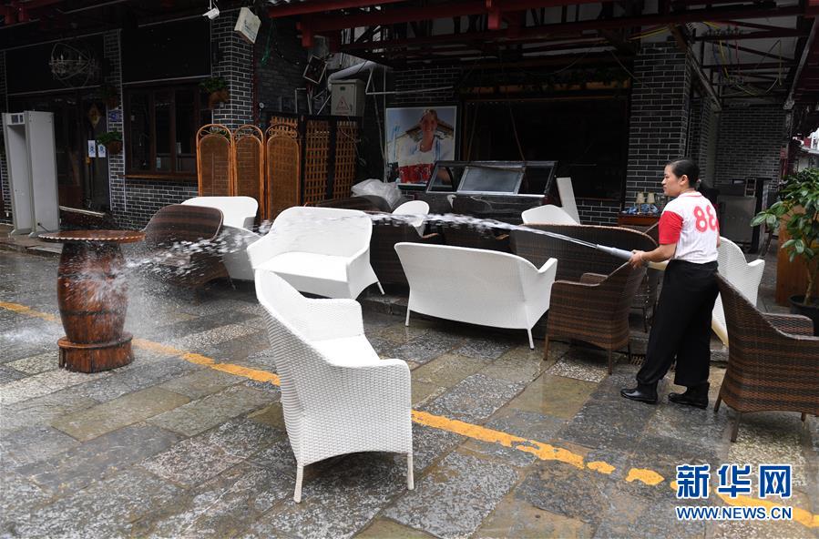 6月8日,在廣西陽朔縣西街,一家商鋪工作人員在沖洗被洪水浸泡的桌椅。6月6日至8日,廣西陽朔縣普降暴雨,局部降特大暴雨,全縣9個鄉(xiāng)鎮(zhèn)出現(xiàn)洪澇災(zāi)害。目前,全縣正有序開展災(zāi)后生產(chǎn)生活恢復(fù)。新華社記者陸波岸攝