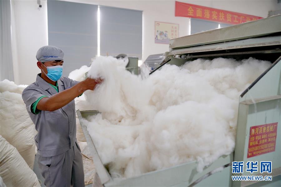 6月16日,工人在清河縣葛仙莊鎮(zhèn)一處“扶貧微工廠(chǎng)”內(nèi)分梳羊絨。新華社記者 牟宇 攝