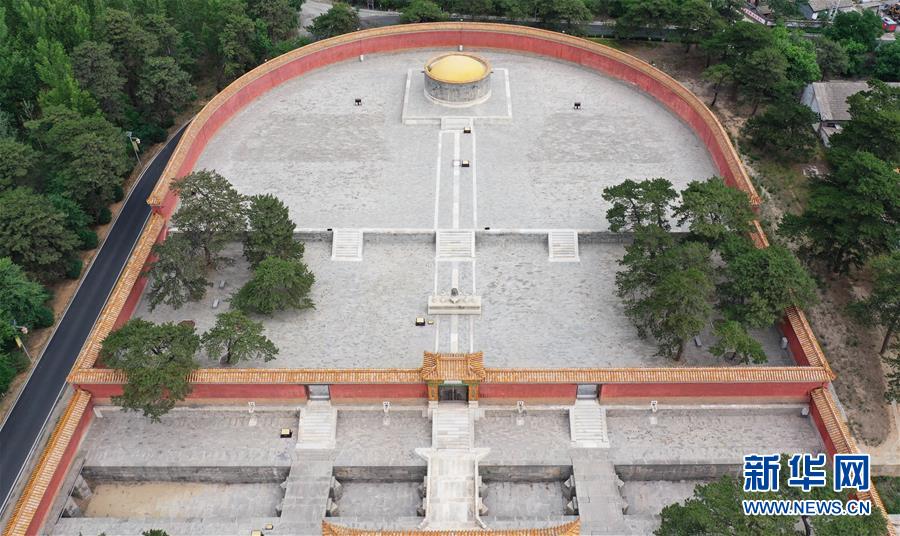 這是清西陵崇陵明樓和寶頂(6月18日攝,無人機照片)。新華社記者朱旭東攝