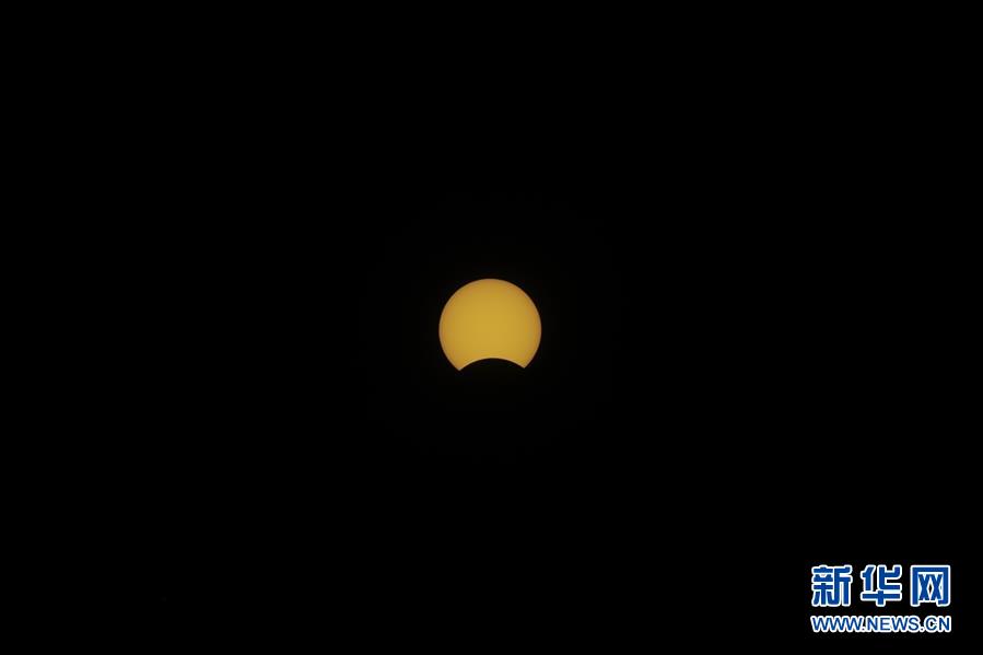 在拉薩觀賞到的日食(6月21日攝)?!叭窄h(huán)食”天文景觀于6月21日“夏至日”下午在天宇上演。新華社記者 普布扎西 攝