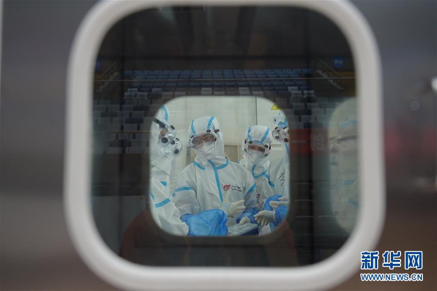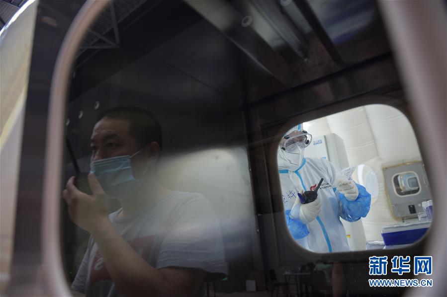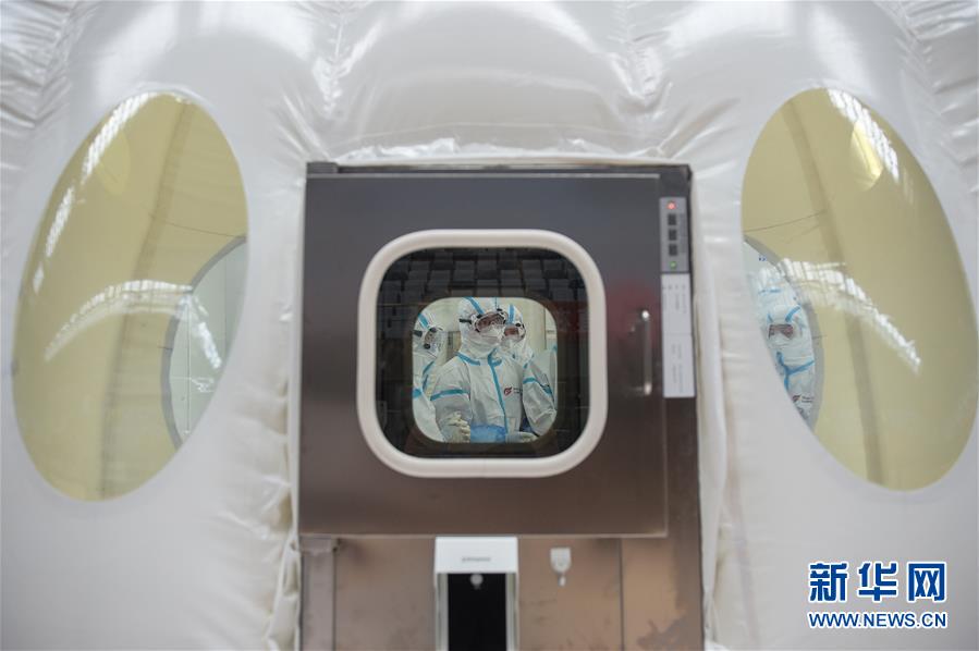 出于北京市疫情防控工作的需要,北京大興區(qū)體育中心綜合館內(nèi)正在搭建一個可移動、自動化、大通量的核酸檢測實驗室。目前,工人們正在緊張地進(jìn)行設(shè)備安裝和調(diào)試。據(jù)介紹,氣膜版“火眼”核酸檢測實驗室6月19日下午開始搭建。兩天多時間基本上完成了設(shè)備安裝和調(diào)試。9個高3.5米、占地70多平方米的拱形白色氣膜艙已搭建完畢,14臺自動化核酸提取設(shè)備準(zhǔn)備就緒。這個北京首座氣膜版“火眼”核酸檢測實驗室正式運轉(zhuǎn)后,實驗室核酸檢測能力可達(dá)到每天上萬人份,緩解當(dāng)前核酸檢測壓力。新華社記者彭子洋攝