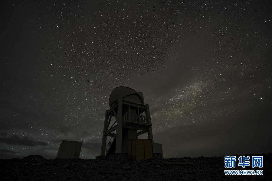 星空下的中國科學(xué)院新疆天文臺慕士塔格觀測站一角(6月16日攝,長時間曝光)。新華社記者胡虎虎攝