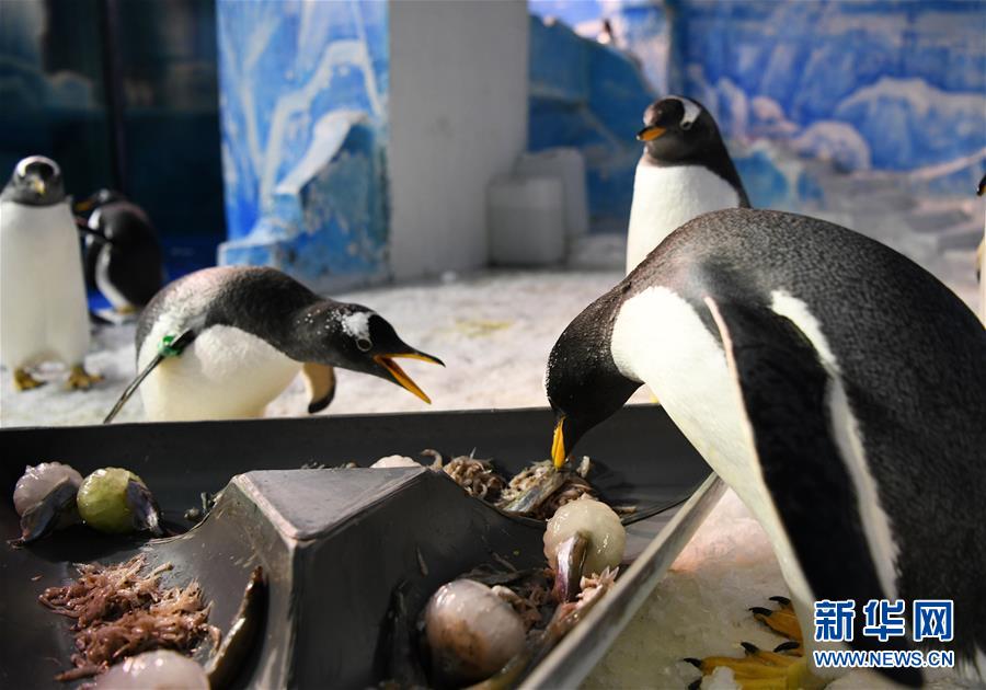 6月24日,哈爾濱極地館的企鵝在品嘗“魚(yú)粽”。當(dāng)日,哈爾濱極地館的工作人員特地準(zhǔn)備了“魚(yú)粽”“肉粽”,讓生活在這里的極地動(dòng)物也品嘗一下端午美食。新華社記者王建威攝