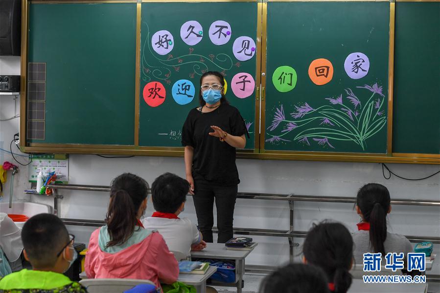 6月29日,在吉林市第一實(shí)驗(yàn)小學(xué),教師關(guān)海英為學(xué)生上開學(xué)第一課。新華社記者張楠攝