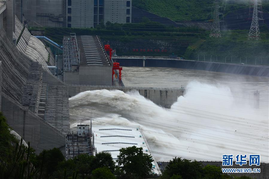 6月29日,三峽樞紐開啟泄洪孔泄洪。受長(zhǎng)江中上游強(qiáng)降雨影響,進(jìn)入三峽水庫的水量持續(xù)增多。為騰出一定庫容迎接近期可能到來的洪水,三峽樞紐于6月29日上午開啟兩個(gè)泄洪孔,加大下泄流量。這是三峽樞紐今年首次泄洪。28日14時(shí),三峽水庫入庫流量達(dá)4萬立方米/秒,是27日14時(shí)的兩倍。為應(yīng)對(duì)此輪來水,長(zhǎng)江防總要求將三峽水庫下泄流量上調(diào)至日均3.5萬立方米/秒。新華社發(fā)(黃善軍攝)