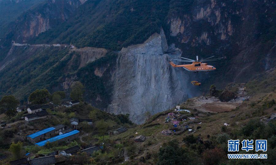 一架米-26重型直升機(jī)在布拖縣阿布洛哈村吊運(yùn)挖掘機(jī)(2019年12月5日攝)。新華社記者江宏景攝