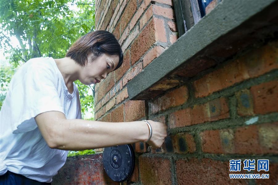 7月1日,地質(zhì)災(zāi)害監(jiān)測員侯芳對因地質(zhì)災(zāi)害搬遷閑置的農(nóng)村房屋進(jìn)行安全巡查。新華社記者劉潺攝