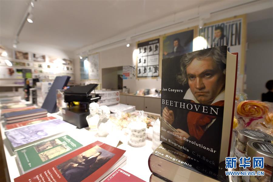 7月2日,奧地利維也納的貝多芬博物館紀(jì)念品商店展示關(guān)于貝多芬的書籍。因疫情關(guān)閉的奧地利維也納貝多芬博物館7月1日起再次開門迎客。該博物館是貝多芬在維也納的故居之一,貝多芬曾在此長(zhǎng)期居住并創(chuàng)作了部分經(jīng)典的音樂作品。2020年是貝多芬誕辰250周年。新華社記者 郭晨 攝