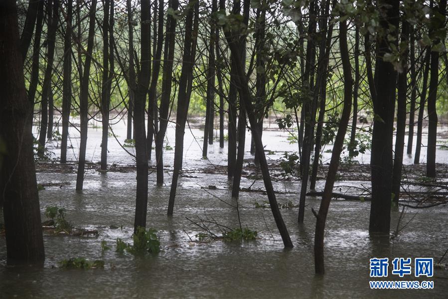 7月7日,上漲的江水淹沒武漢天興洲江邊的部分植被。新華社記者肖藝九攝