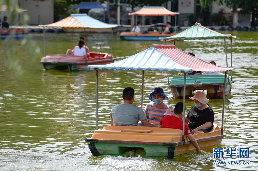 游客在烏魯木齊紅山公園劃船(7月5日攝)。新華社記者丁磊攝