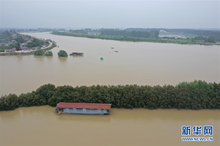7月9日拍攝的水陽江南京高淳段(無人機(jī)照片)。入梅以來,江蘇省南京市高淳區(qū)多次遭受強(qiáng)降雨,加上上游來水量大,截至7月9日8時(shí),高淳境內(nèi)水陽江水碧橋水位達(dá)到13.01米,超警戒水位2.51米。7月7日水陽江區(qū)域已啟動(dòng)防汛應(yīng)急Ⅰ級(jí)響應(yīng)。高淳區(qū)在水陽江區(qū)域堤防沿線設(shè)立241個(gè)防汛值守點(diǎn),實(shí)施24小時(shí)值班值守。新華社記者季春鵬攝