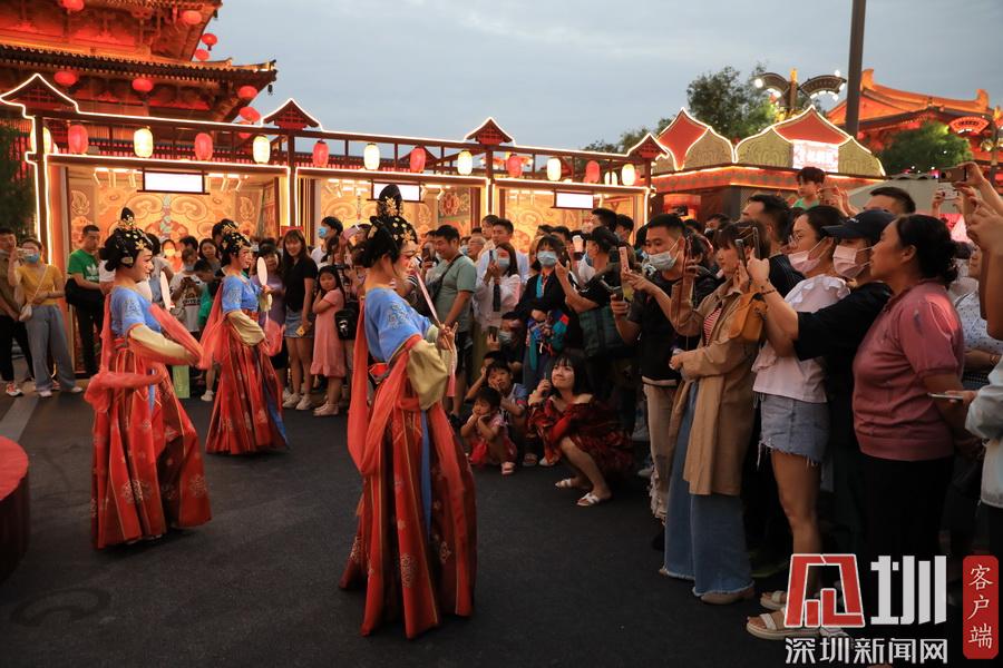 2020年7月14日,西安大唐不夜城游人如織,“煙火氣”十足,特色美食、樂隊駐唱、花車夜游等內(nèi)容,吸引著市民和各地游客“打卡”。昔日看夜景、品美食、夜購物等場景,又在這條步行街被重新“點燃”。
