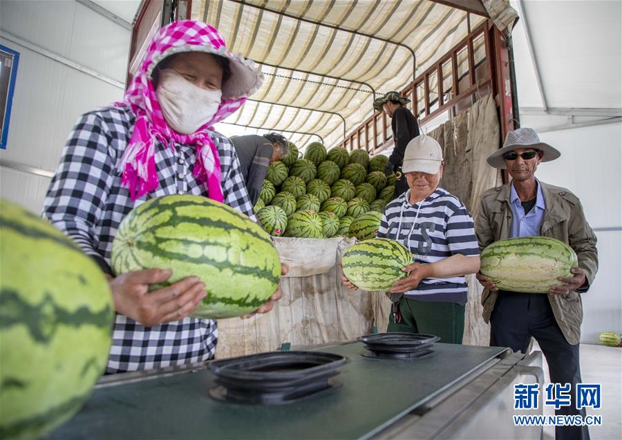 7月16日,在寧夏中衛(wèi)市香山鄉(xiāng)硒砂瓜自動分選中心,瓜農將硒砂瓜放到自動篩選設備傳送帶上。近日,寧夏中衛(wèi)市迎來硒砂瓜豐收季。硒砂瓜是中衛(wèi)市的特色農產品,近年來,當?shù)夭扇〖夹g創(chuàng)新、規(guī)?;N植、休耕輪作等多項舉措,讓硒砂瓜種植成為當?shù)剞r民增收致富的重要產業(yè)。據(jù)了解,今年中衛(wèi)市硒砂瓜種植面積為69.7萬畝。新華社記者楊植森攝