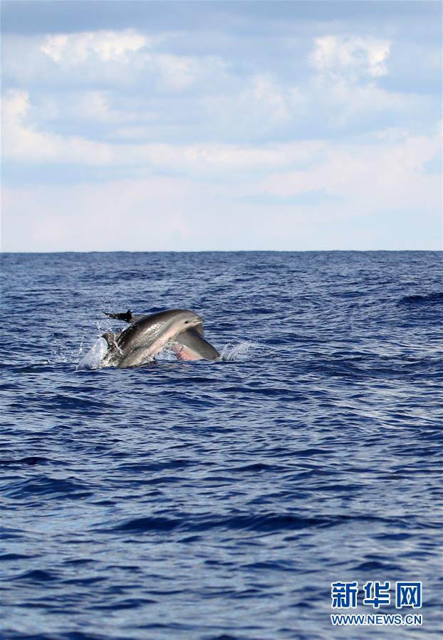 這是7月20日在南海某海域拍攝的弗氏海豚。新華社記者張麗蕓攝