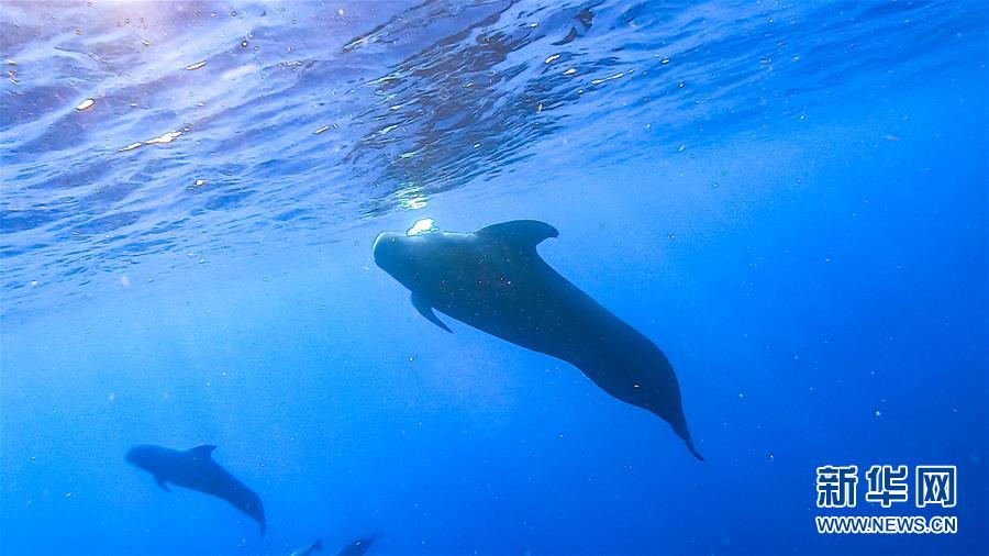 這是7月20日在南海某海域拍攝的短肢領(lǐng)航鯨。新華社記者張麗蕓攝