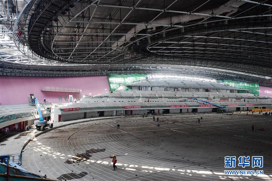 7月22日,工人在國(guó)家速滑館內(nèi)施工。新華社記者張晨霖?cái)z