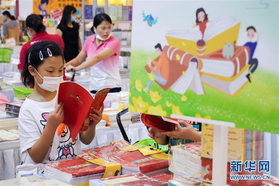 7月23日,一名小讀者在書展上閱讀。當日,第十屆江蘇書展在江蘇蘇州開幕,400多家出版發(fā)行單位參展,吸引眾多讀者選購圖書。新華社記者李博攝