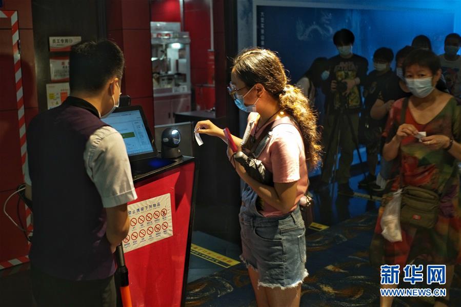 7月24日,在首都電影院(西單店),市民排隊(duì)驗(yàn)票進(jìn)入影廳。當(dāng)日,在做好新冠肺炎疫情防控的前提下,北京市部分電影院有序恢復(fù)開放。新華社記者 彭子洋 攝
