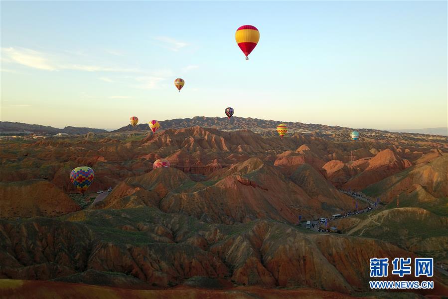 這是7月26日拍攝的張掖世界地質(zhì)公園七彩丹霞景區(qū)景觀(無(wú)人機(jī)照片)。新華社記者 范培珅 攝