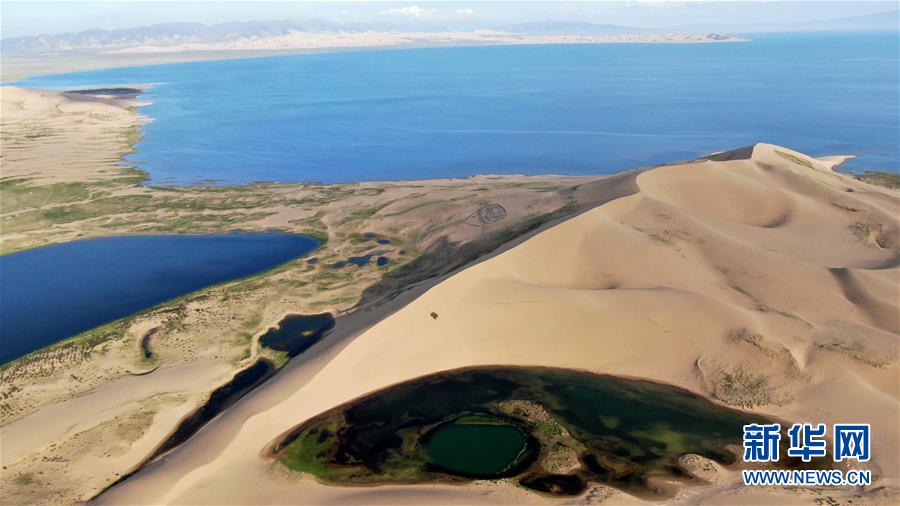 這是青海湖沙島一角(7月28日攝)。盛夏傍晚,位于青海湖東北部的沙島,島內(nèi)湖泊星羅棋布,沙丘連綿起伏,風(fēng)景別致。金沙與湖水掩映,在陽(yáng)光的勾勒下形成一幅美麗的畫(huà)卷。新華社記者張宏祥攝